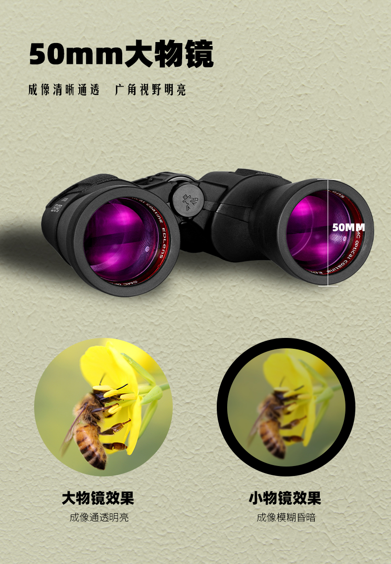 10X50 High-Power Binoculars With Full Ed Lenses, High-Definition Outdoor Fishing Binoculars, Night Vision, Sight, Bee Hunting