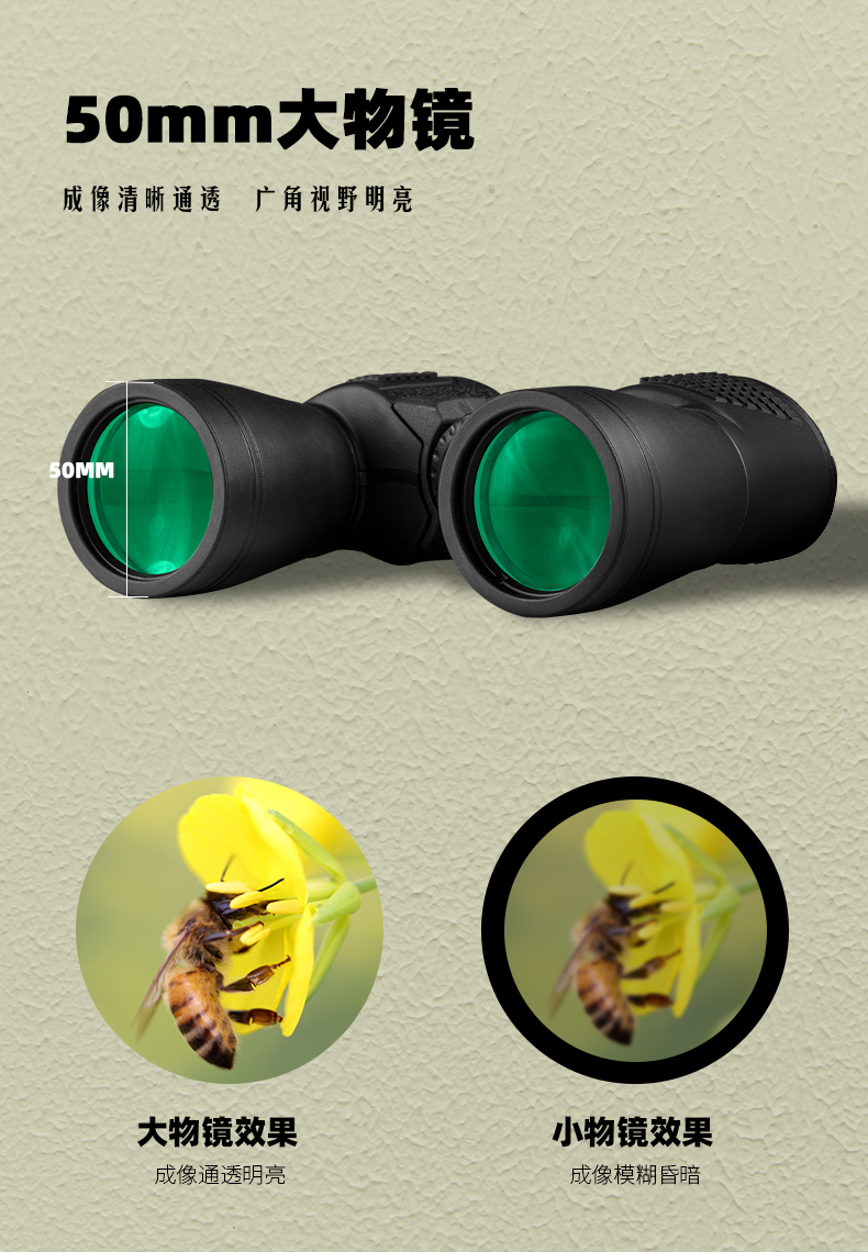 16X50 Armored Binocular Outdoor Equipment Telescope, Non-Ed Green Film High-Definition High-Magnification Fishing And Beekeeping Telescope