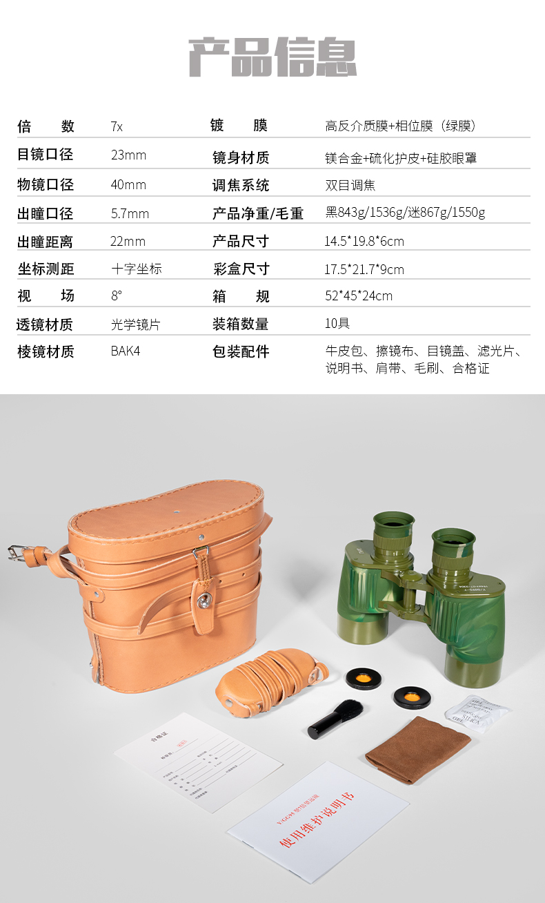 The 95-Type 7X40 Binoculars Are Outdoor High-Definition, High-Magnification Night Low-Light Cross-Coordinate Ranging All-Metal Telescopes