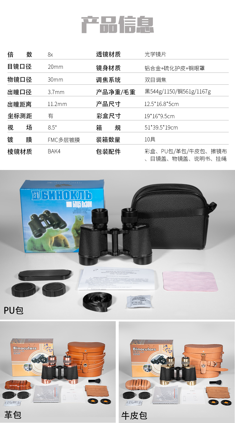 Becos 8X30 High-Definition Outdoor Portable Low-Light Night Vision Becos Dual-Tone All-Metal Binoculars