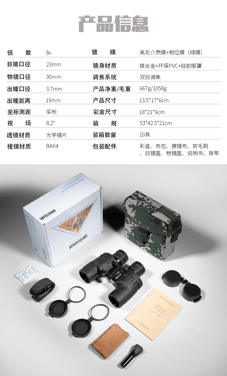 Habo 8X30 War God Binoculars Outdoor Viewing High-Definition High-Magnification Optical Low-Light Night Vision Binoculars Source Factory