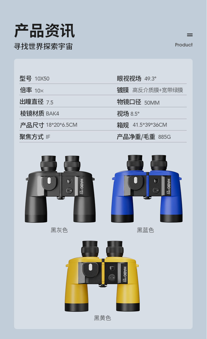 The New Habo High-End Telescope 10X50 Multi-Color Compass Infrared Ranging Outdoor Low-Light Night Vision High-Definition High-Magnification Marine Compass Binoculars